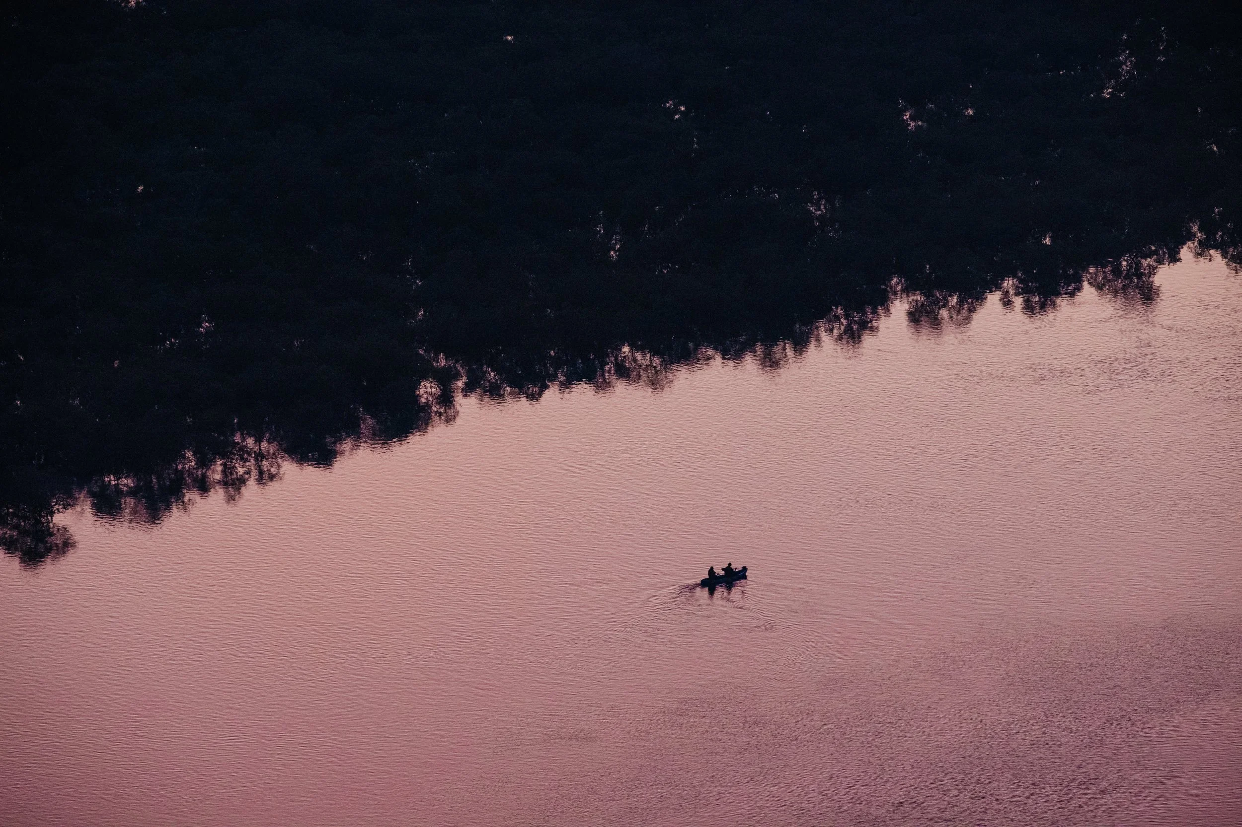 As the kayak glides across the water, reflecting the purple hues of sunset, solitude reveals itself as something both blissful and beautiful.